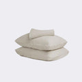 Enhance your bedroom's ambiance with our natural linen starter set, designed to create a soothing retreat. Ensuring a restful night’s sleep, this set is crafted from high-quality flax, offering both softness and strength. Its unique thermoregulating properties naturally adjust to keep you comfortable, no matter the season.